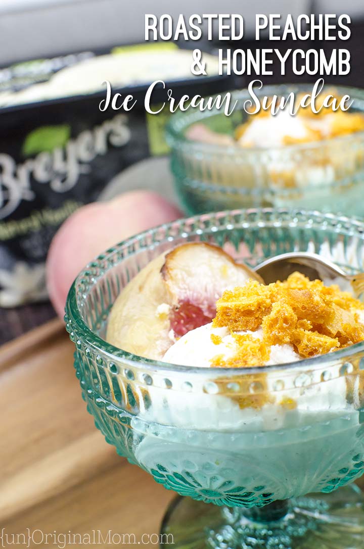 - Spoon ½ cup Breyers® Natural Vanilla Ice Cream into each of 8 bowls. Top with warm roasted peaches and warm juices. Sprinkle with honeycomb pieces and serve immediately.